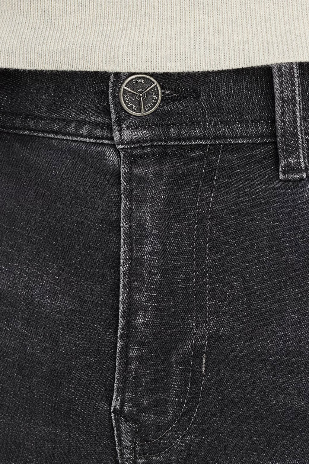 De PME Legend Tailwheel jeans is een gedetailleerde slim fit jeans met een smalle pijp. De mix van katoen en elastaan geeft de spijkerbroek een zacht en comfortabel gevoel. De zachte left hand structuur zorgt voor extra draagcomfort. Deze PME legend spijkerbroek heeft een subtiele, donkerblauwe wassing en mooie whiskers op de bovenbenen. Beide voorzakken worden verstevigd met een kenmerkend stuk jeans. De PME Legend borduursels op de coin pocket en de rechter achterzak maken het design af.