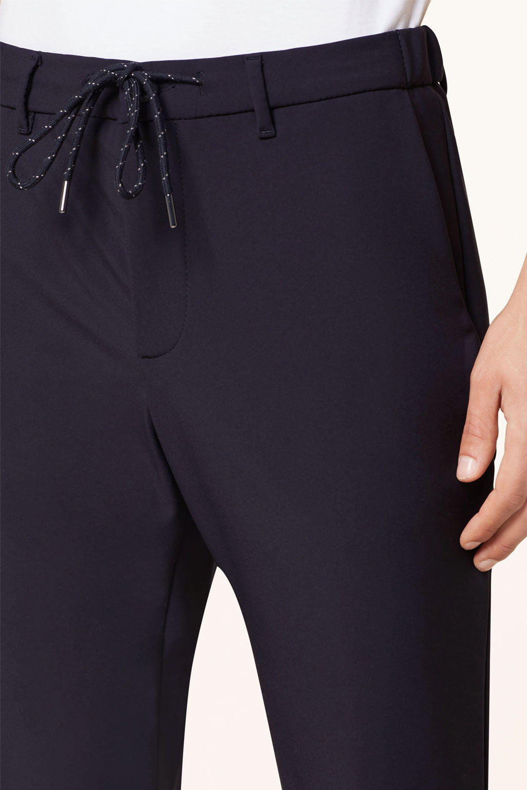 De ultieme travel tech broek van Alberto in model Mover is een slim fit broek met super-stretch voor optimale bewegingsvrijheid. De midden hoge tailleband en elastische tailleband zorgen voor maximaal draagcomfort. De broek heeft een sportcord dat ook naar binnen kan worden gedragen of zelfs volledig verwijderd, en beschikt ook over riemlussen voor extra veelzijdigheid. De technische travelstof gemaakt met koffie-houtskool, neutraliseert de stof geurtjes, absorbeert vocht en is ultra duurzaam. Bovendien is de broek waterafstotend en kreukvrij, waardoor je er altijd fris en verzorgd uitziet, zelfs op reis in elk klimaat!